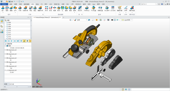 动画和干涉检查 | 通过生动和形象地动画效果展现装配和爆炸,以及一些结构体运动过程。包括约束动画,连杆约束运动,齿轮啮合等等,同时还可生成动画轨迹,以便查看运动情况以及后续利用该轨迹线建模。干涉检查可以及时的发现设计中存在的干涉问题,提醒用户考虑设计的合理性,减少所需的实物样机数量。系统提供干涉数量、干涉体积的结果统计功能。 |